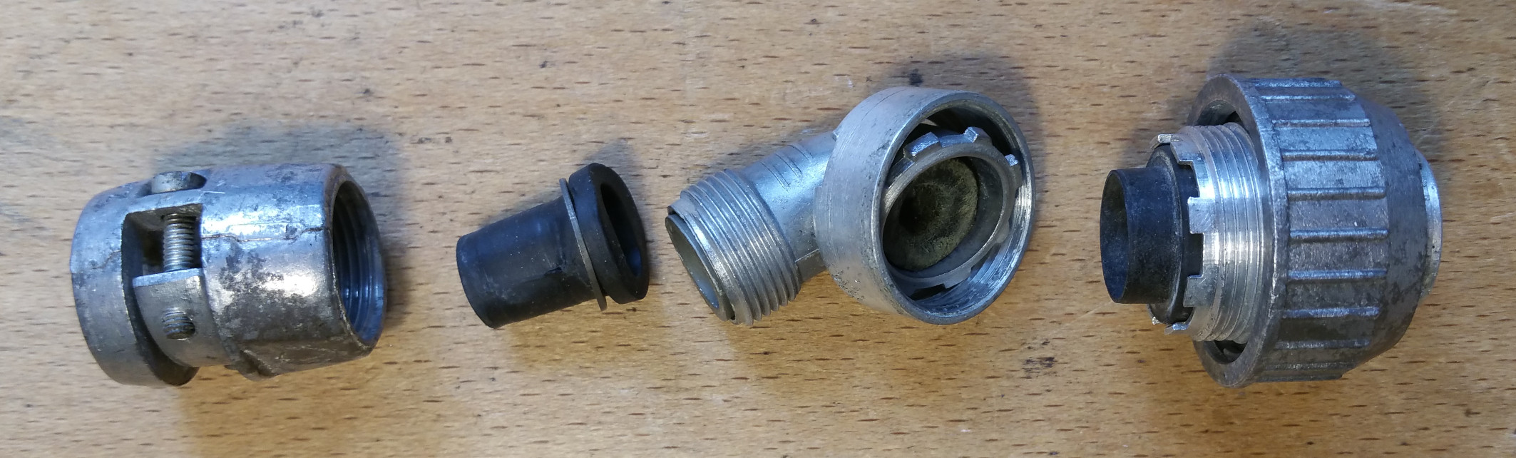 All threads are British Standard Whitworth (BSW), to BS 84. A very fine 26 TPI is used for outlet nuts, outlets, union nuts and cable clamps, while slightly coarser 20 TPI is used for the coupling threads. It is noted that in use, the coupling threads tend to start to show signs of wear if they are regularly connected and disconnected, this shows int he form of dark dust, and aluminium "pick-up" on threads. A grease XG-275 (Sotres Ref. No.: 34B/222) is recommended by A.P.4343C, Section 5, Chapter 8, Paragraph 15, which appears to be obsolete as I am struggling to find any information online about this grease.