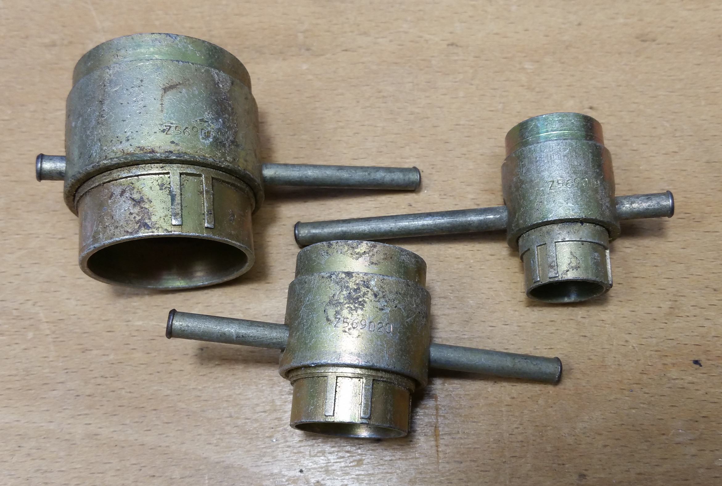 A set of three double sided tools are used for holding the connector bodes while nuts are tightened. The two sides of the tools allow for holding either the fixed units or free units. The tools use the keyways of the body to restrict movement.