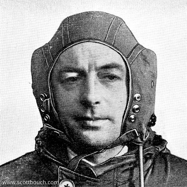 Detail of newly-developed flying helmet with modified earphone installation. The new vizor is shown in the partly raised position, where it would serve as an efficient sunshield.