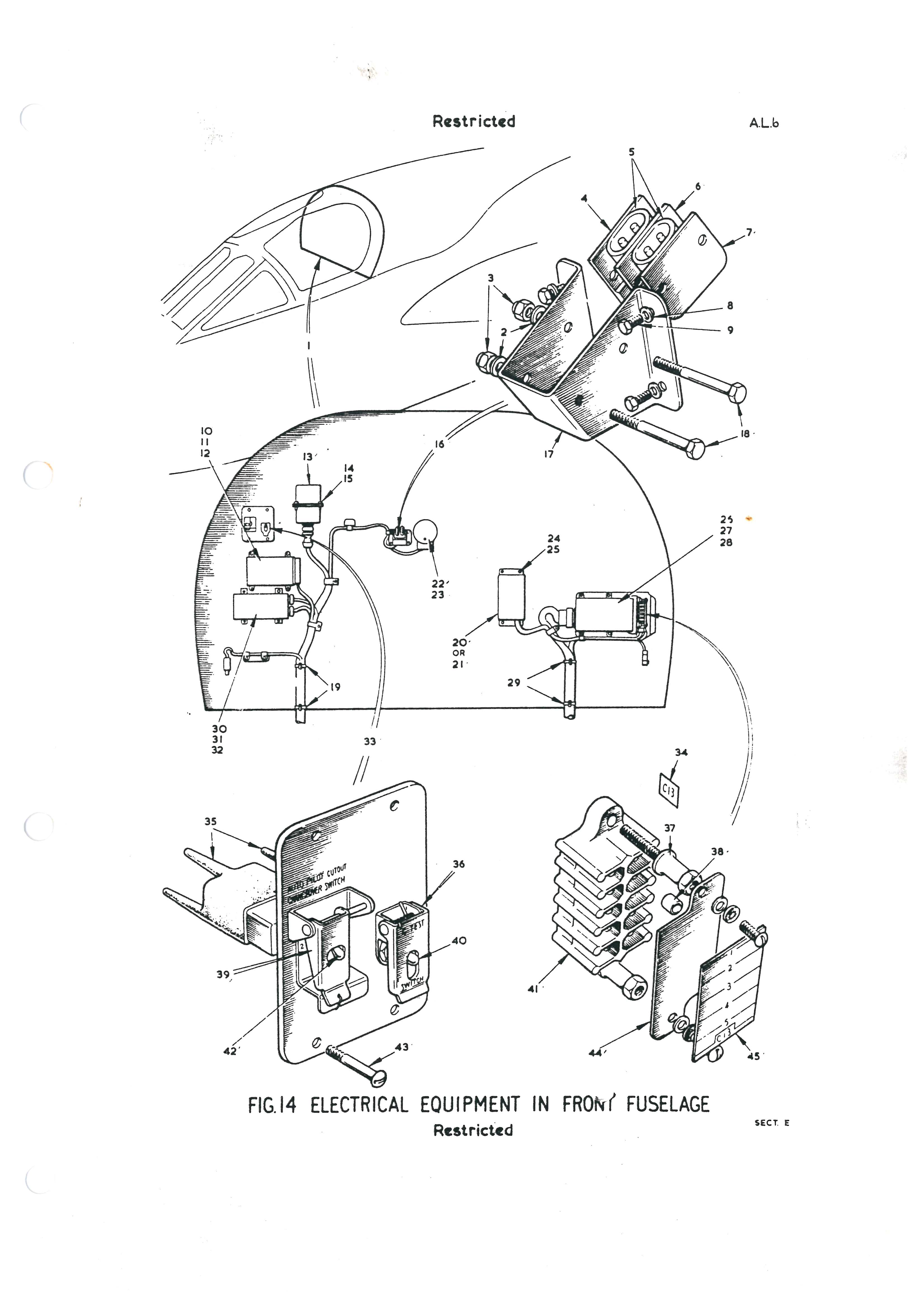 Its flying leads are terminated to terminal block T.B C13 as shown below on the cockpit sloping rear bulkhead.
